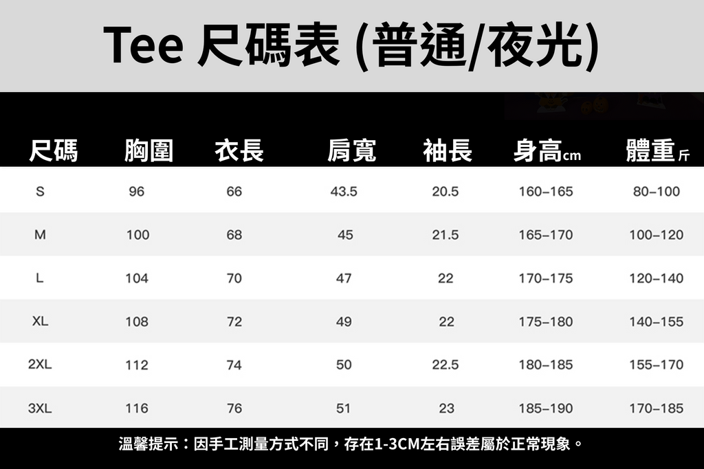 正常/夜光Tee Size 尺寸: S - 3XL